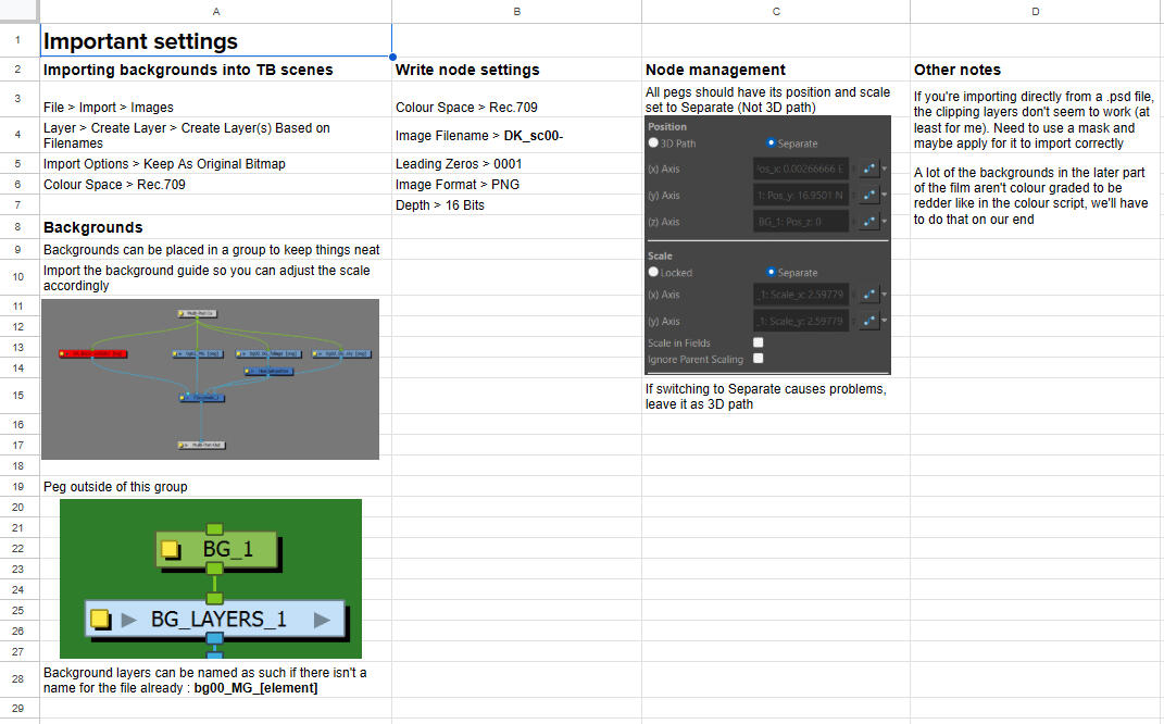 - Spreadsheet also included important notes to standardise all renders (colour spaces, formatting)