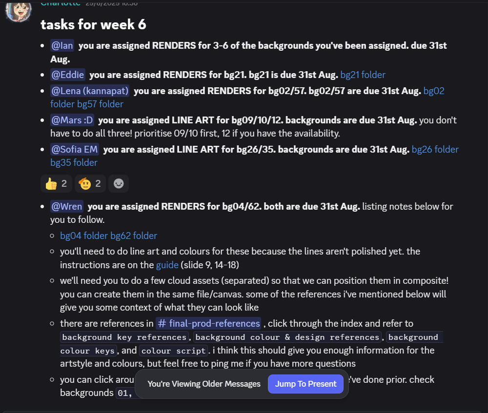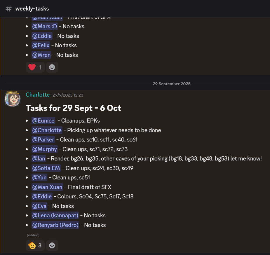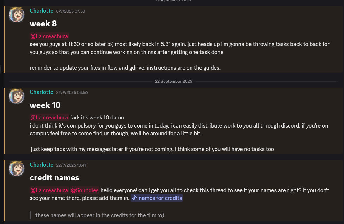 • Also regularly updated the team about meetings and other information, the usual producer spiel.
